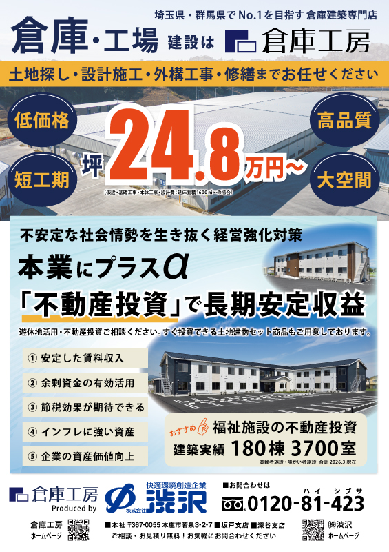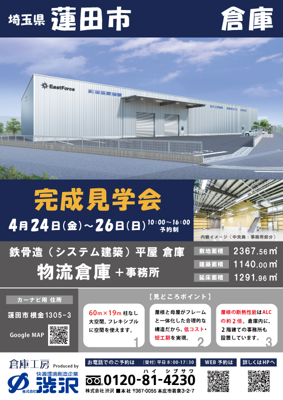 埼玉県 蓮田市に、鉄骨造「システム建築」の『物流倉庫』が2026年4月完成予定です。